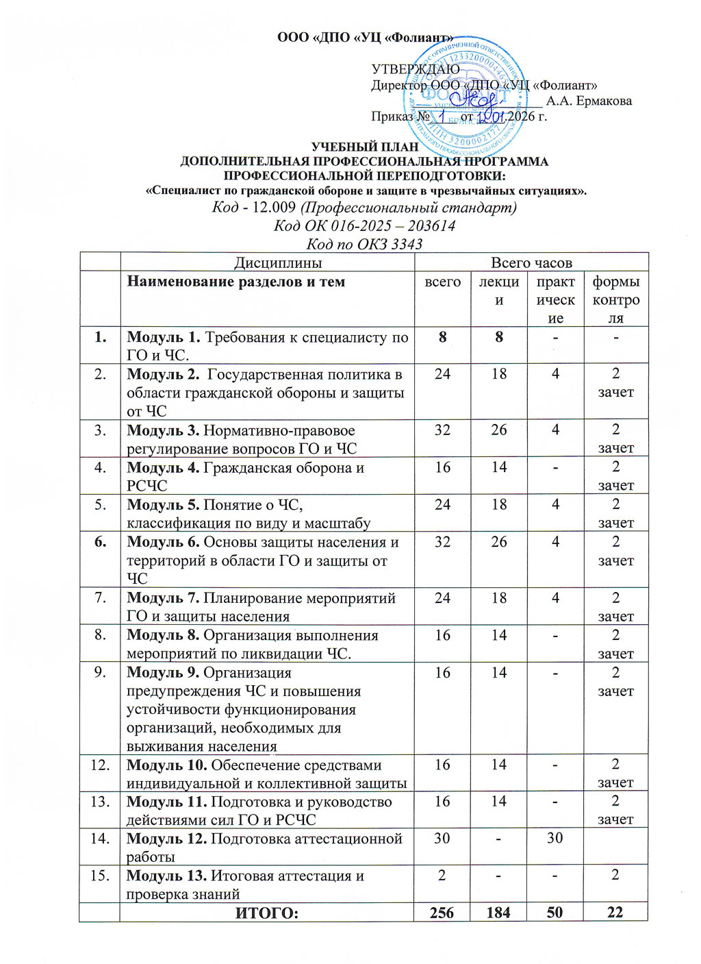 Цель: Целью реализации программы является формирование у слушателей профессиональных компетенций, необходимых для самостоятельного выполнения нового вида профессиональной деятельности в области гражданской обороны и защиты населения и территорий от чрезвычайных ситуаций, с учетом актуальных требований законодательства Российской Федерации.