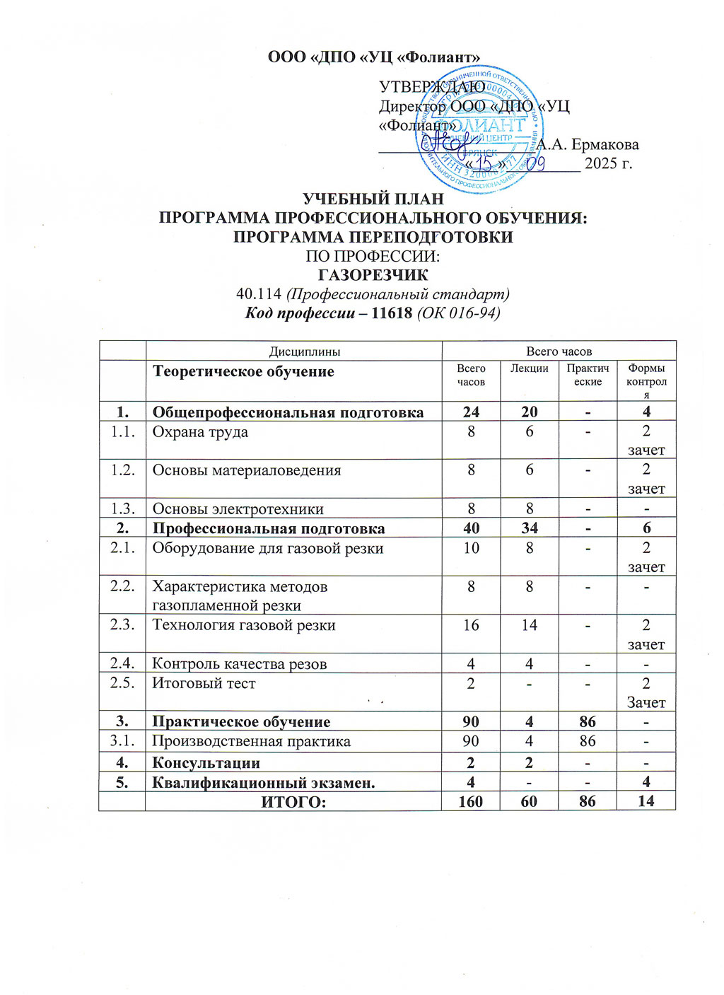 Цель: сформировать у слушателей конкретные профессиональные знания и навыки, а также профессиональные компетенции, необходимые для применения в практической деятельности по профессии рабочего «Газорезчик» и готовность к успешной самостоятельной деятельности в различных сферах производства, востребованных на рынке труда, трудоустройству (в т.ч. самозанятости).