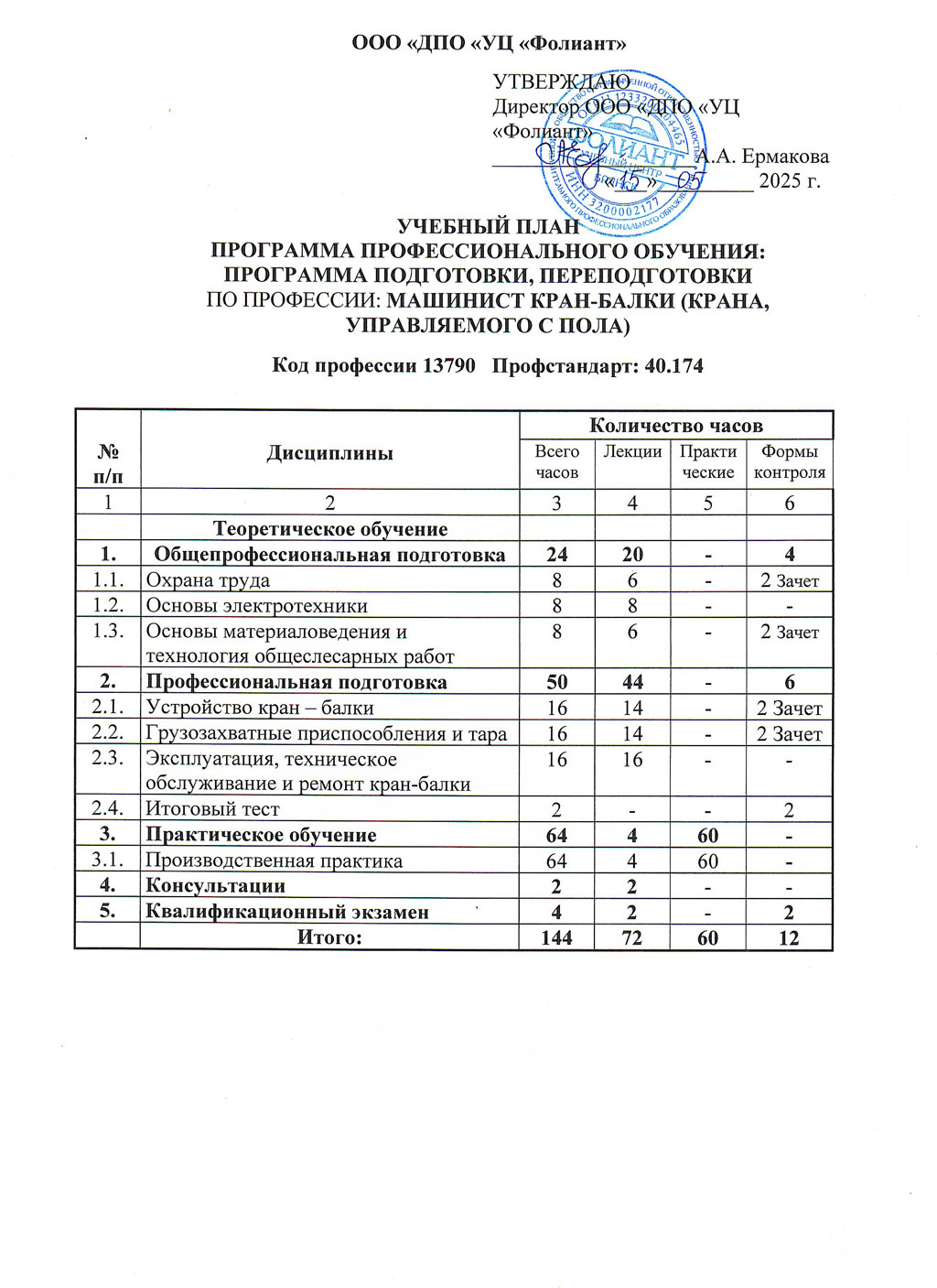 Цель: сформировать у слушателей конкретные профессиональные знания и навыки, необходимые для применения в практической деятельности по профессии «Машинист крана автомобильного» 4 разряда (краны автомобильные грузоподъемностью до 6,3 т) и сформировать готовность к успешной деятельности на рынке труда, трудоустройству.