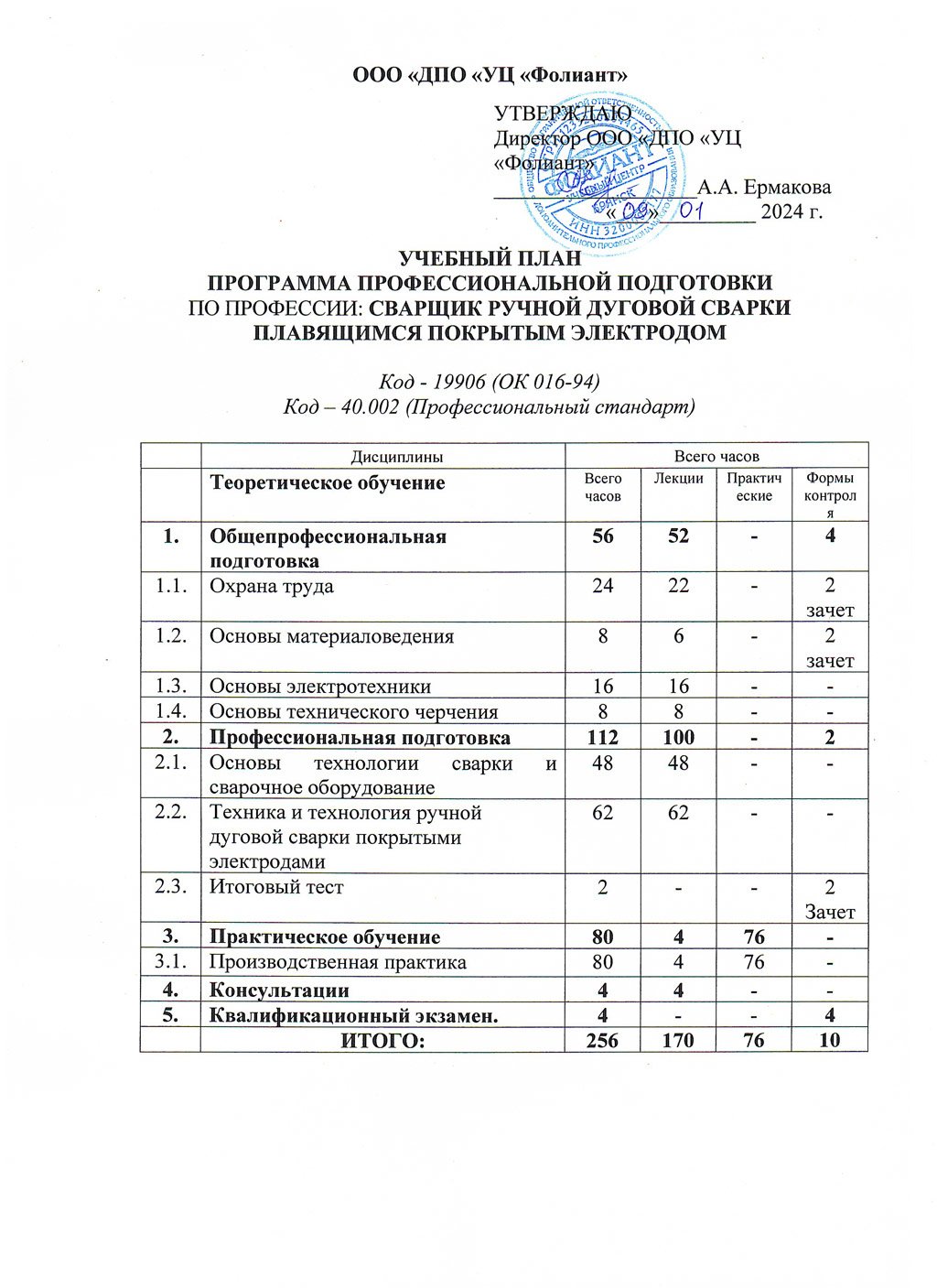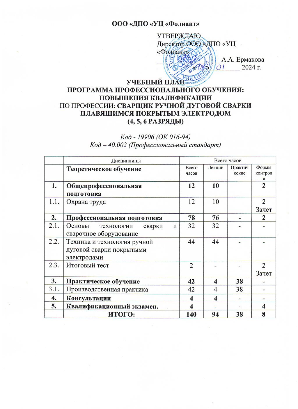 Цель: Целью реализации программы является сформировать у слушателей конкретные профессиональные знания и навыки, а также профессиональные компетенции, необходимые для применения в практической деятельности по профессии рабочего «Электросварщик ручной сварки» и готовность к успешной самостоятельной деятельности в различных сферах производства, востребованных на рынке труда, трудоустройству (в т.ч. самозанятости).