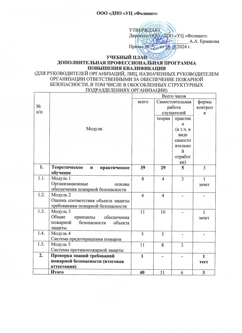 В процессе освоения программы повышения квалификации в области пожарной безопасности для руководителей организаций, лиц, назначенных руководителем организации ответственными за обеспечение пожарной безопасности слушатель должен приобрести следующие общие и профессиональные компетенции: