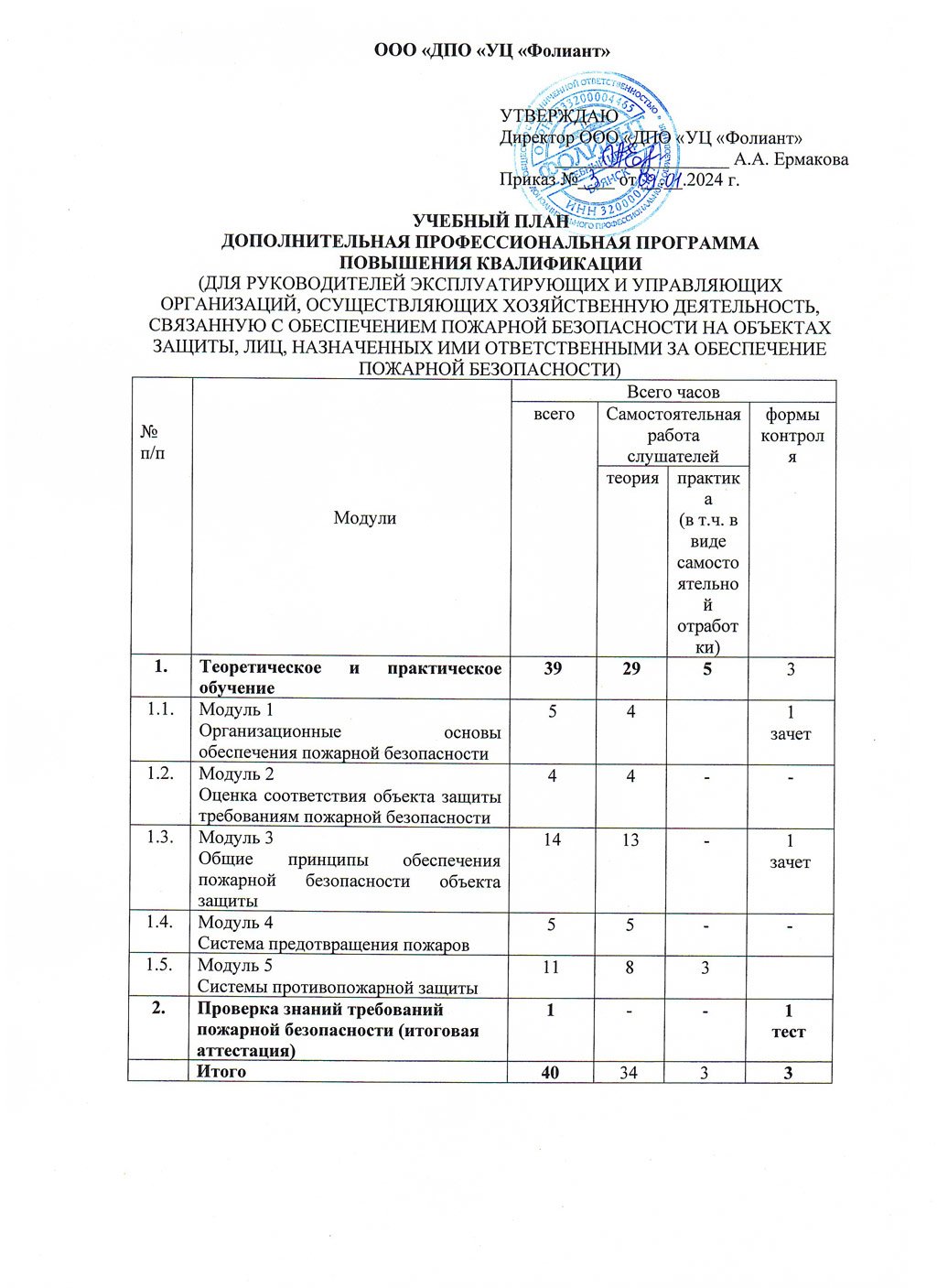 Цель: подготовка слушателей, направленная на получение ими новой компетенции, необходимой для профессиональной деятельности по исполнению требований по обеспечению пожарной безопасности на объектах защиты.