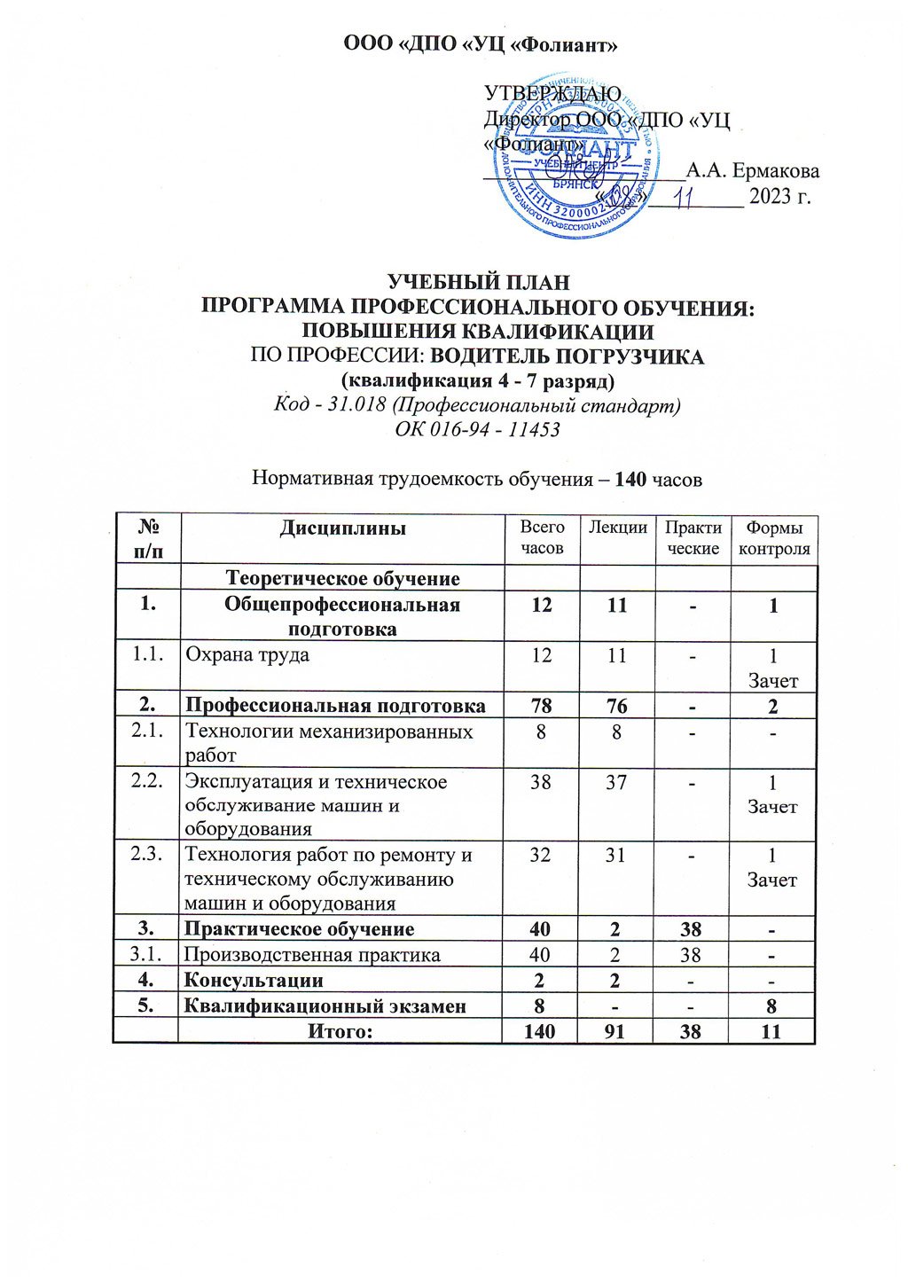 Цель: сформировать у слушателей конкретные профессиональные компетенции, для выполнения погрузочно-разгрузочных работ, необходимые для применения в практической деятельности по профессии «Водитель погрузчика» и сформировать готовность к успешной деятельности на рынке труда.