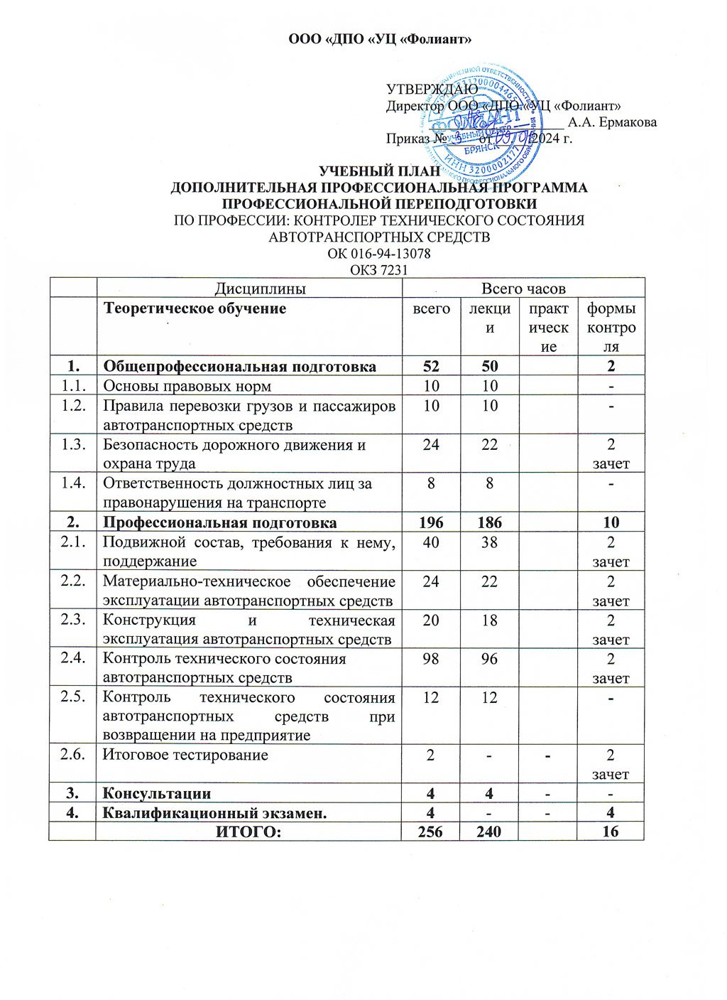 Слушателям, успешно освоившим программу и прошедшим итоговую аттестацию, выдается Диплом установленного образца о профессиональной переподготовке по профессии «Контролер технического состояния автотранспортных средств» и копия протокола заседания квалификационной комиссии.