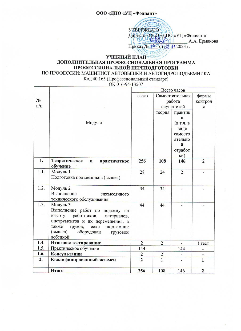 Прошедший подготовку и итоговую аттестацию должен быть готов к профессиональной деятельности в качестве Машиниста автовышки и автогидроподъемников организациях (на предприятиях) различной отраслевой направленности независимо от их организационно-правовых форм.