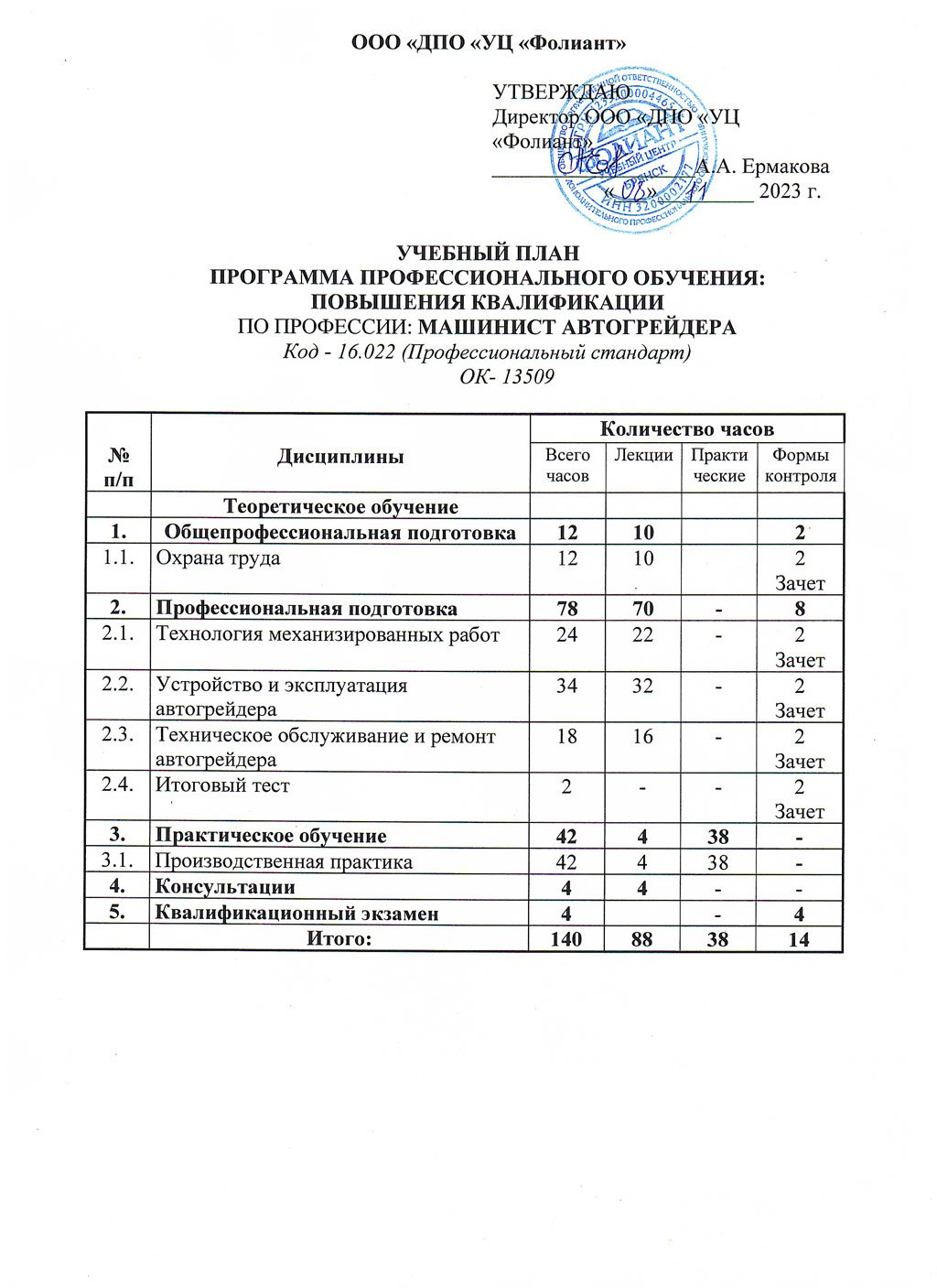 Слушателям, успешно освоившим программу и прошедшим итоговую аттестацию, выдается свидетельство установленного образца, свидетельство серии АА для Гостехнадзора и копия протокола заседания квалификационной комиссии.