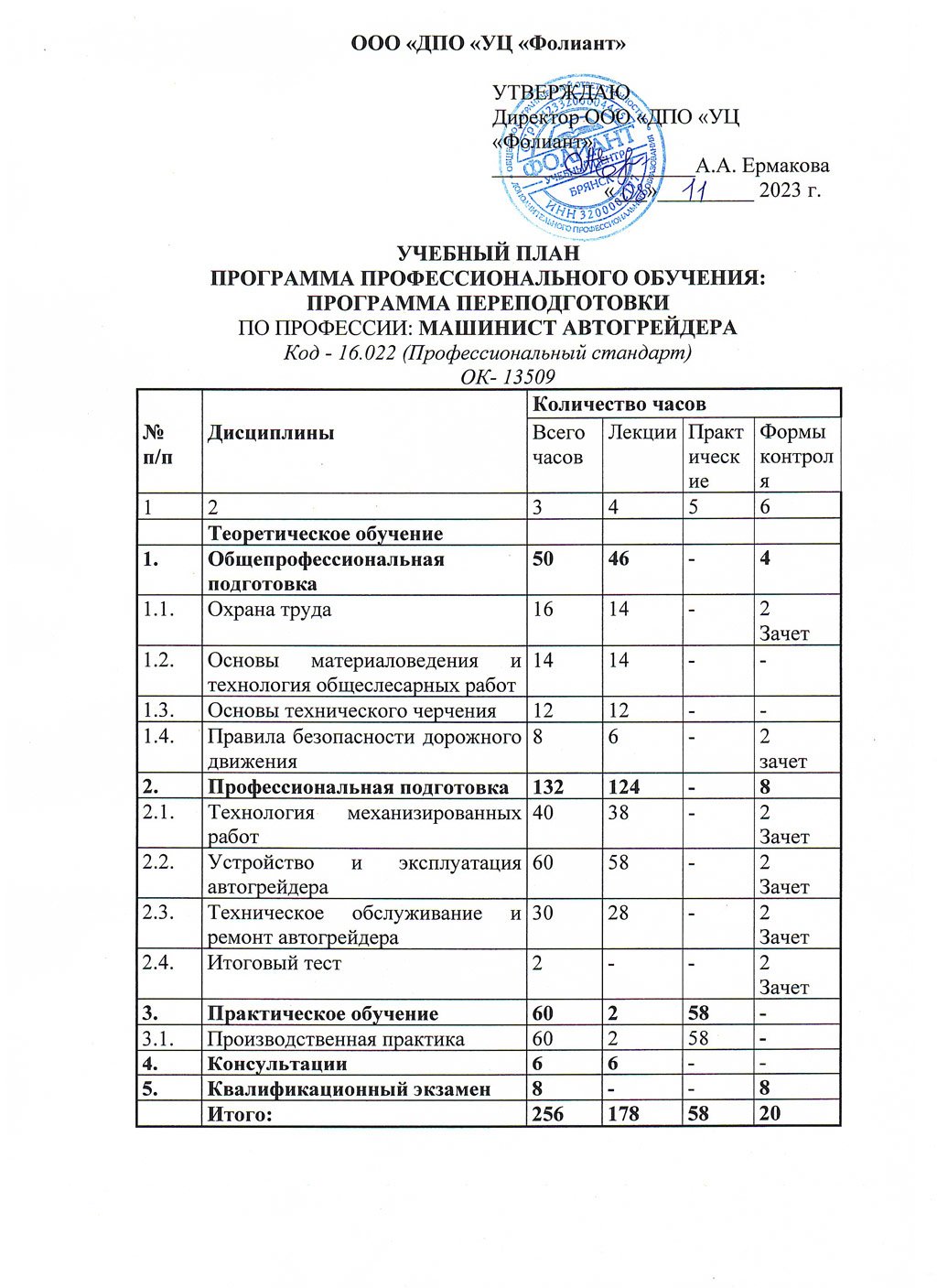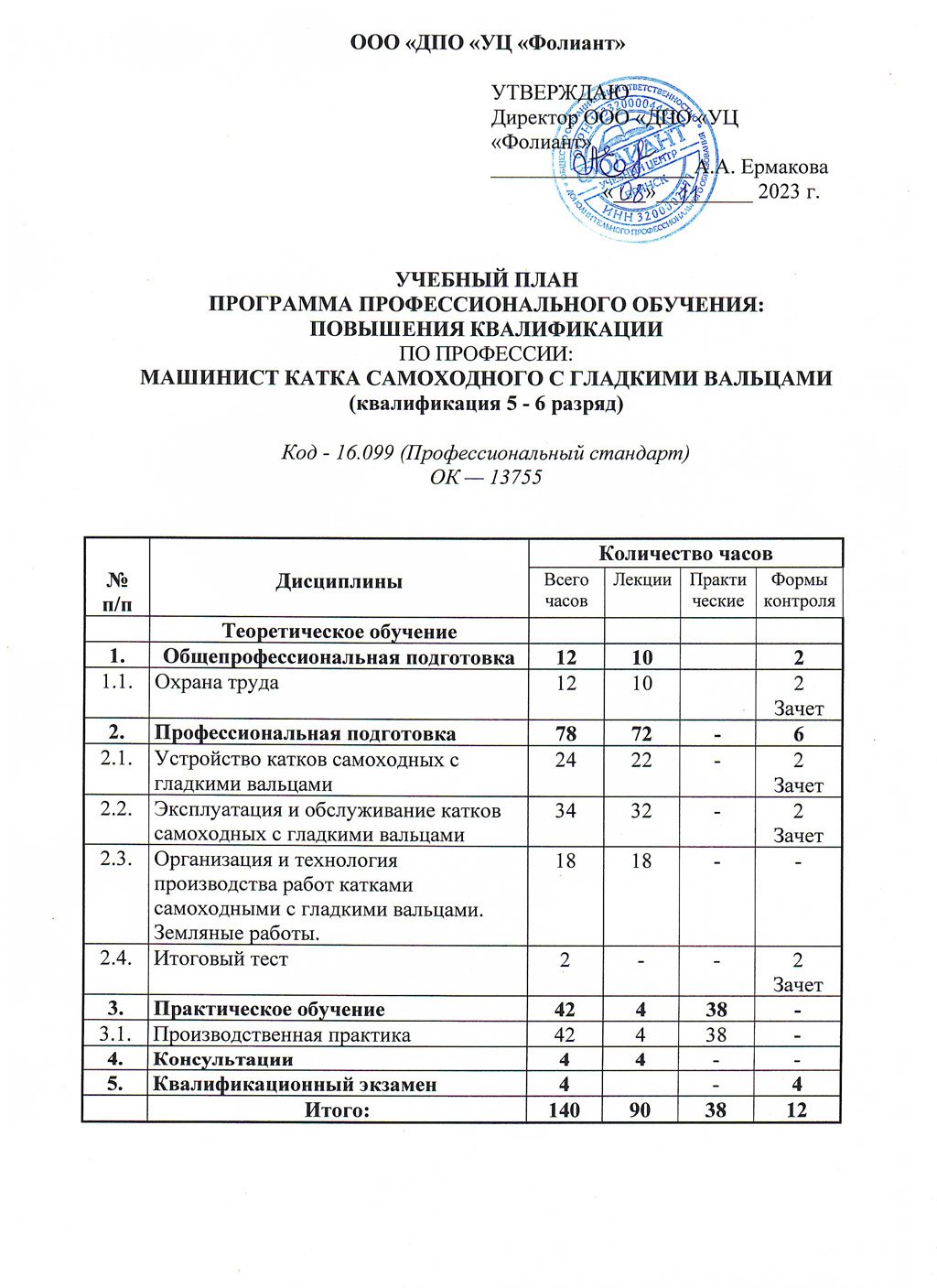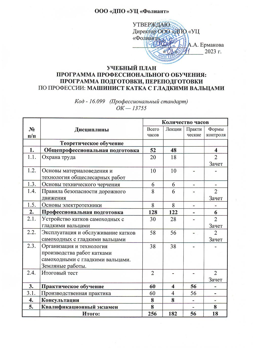 Цель: сформировать у слушателей конкретные профессиональные знания и навыки, необходимые для применения в практической деятельности по профессии «Машинист катка самоходного с гладкими вальцами» и сформировать готовность к успешной деятельности на рынке труда, трудоустройству.