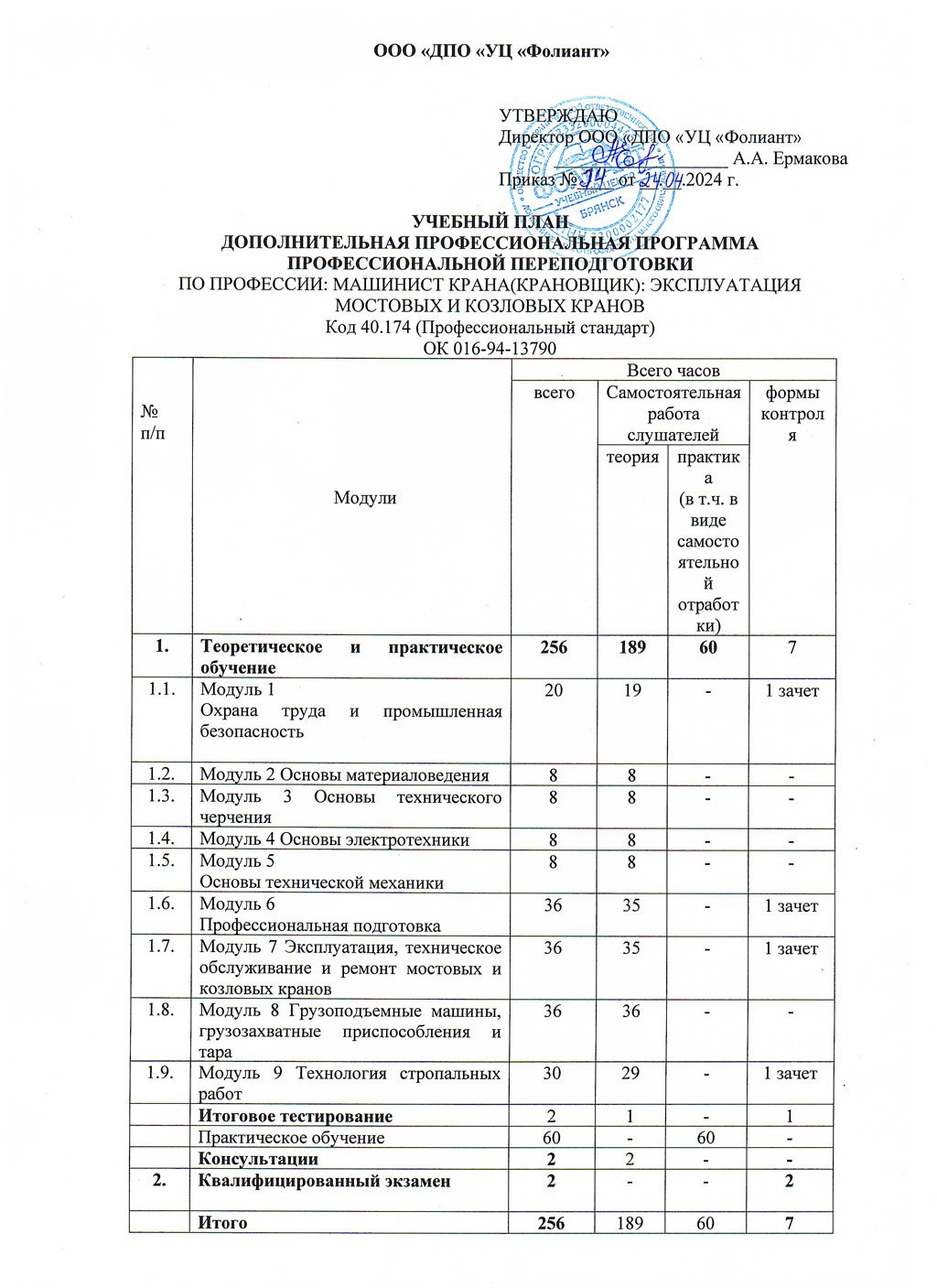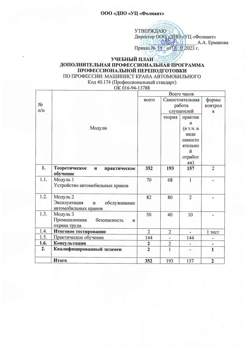 Цель: сформировать у слушателей конкретные профессиональные знания и навыки, необходимые для применения в практической деятельности по профессии «Машинист крана автомобильного» 4 разряда (краны автомобильные грузоподъемностью до 6,3 т) и сформировать готовность к успешной деятельности на рынке труда, трудоустройству.
