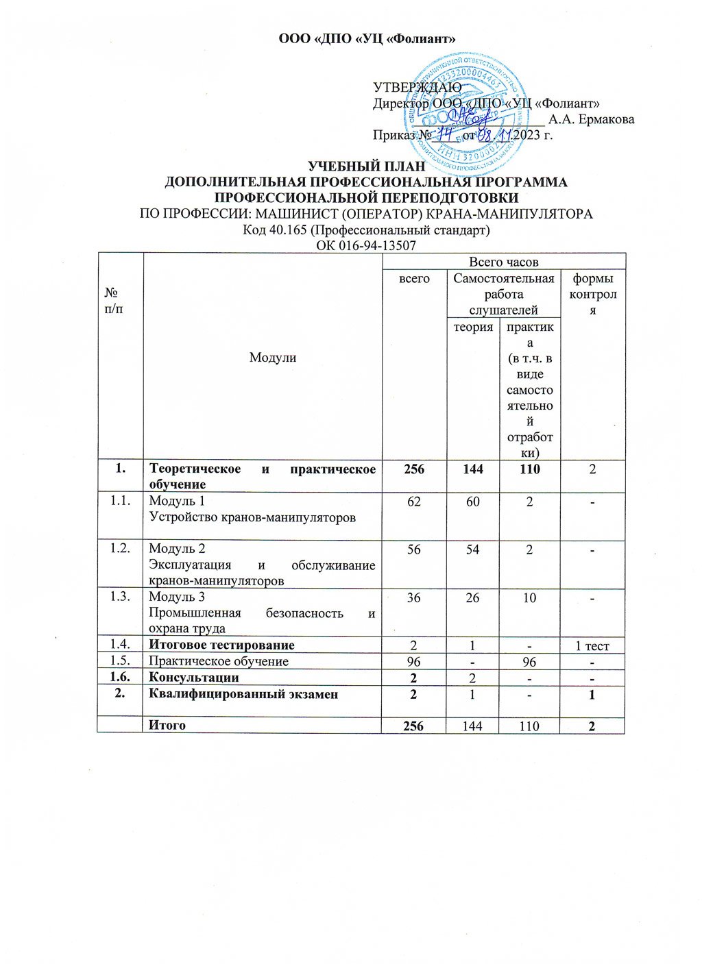 Прошедший подготовку и итоговую аттестацию должен быть готов к профессиональной деятельности в качестве Машиниста крана-манипулятора организациях (на предприятиях) различной отраслевой направленности независимо от их организационно-правовых форм.