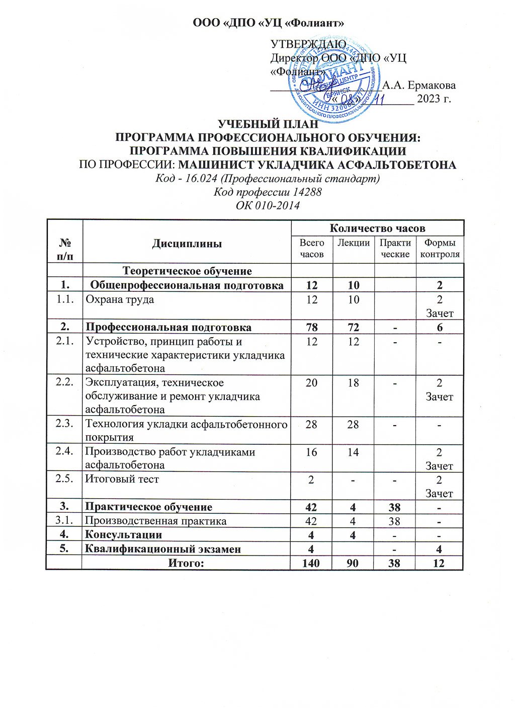 Цель: сформировать у слушателей конкретные профессиональные компетенции, необходимые для применения в практической деятельности по профессии «Машинист укладчика асфальтобетона» и сформировать готовность к успешной деятельности на рынке труда, трудоустройству. Выполнение механизированных работ с применением укладчика асфальтобетона при осуществлении общестроительных работ по строительству мостов, наземных и надземных дорог, тоннелей и подземных дорог, взлетно-посадочных полос аэродромов, автострад, шоссе, улиц, велосипедных дорожек, прочих дорог для автомобильного транспорта и пешеходов, открытых автомобильных стоянок.