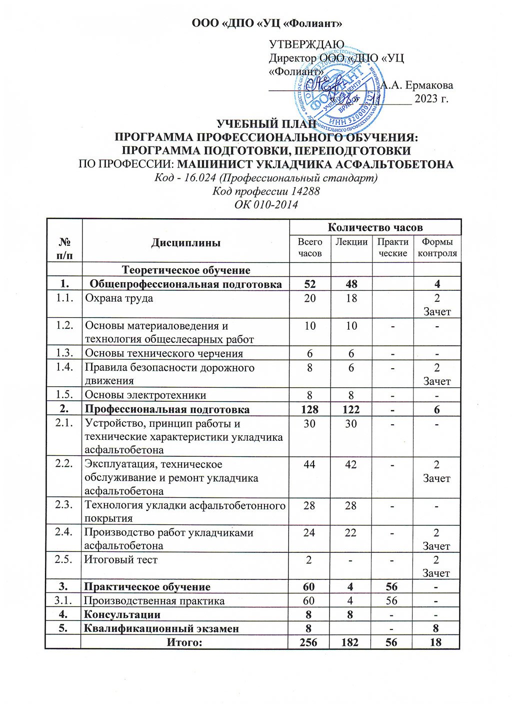 Слушателям, успешно освоившим программу и прошедшим итоговую аттестацию, выдается Свидетельство установленного образца о профессиональной переподготовке по профессии «Машинист укладчика асфальтобетона», свидетельство серии АА и копия протокола заседания квалификационной комиссии.