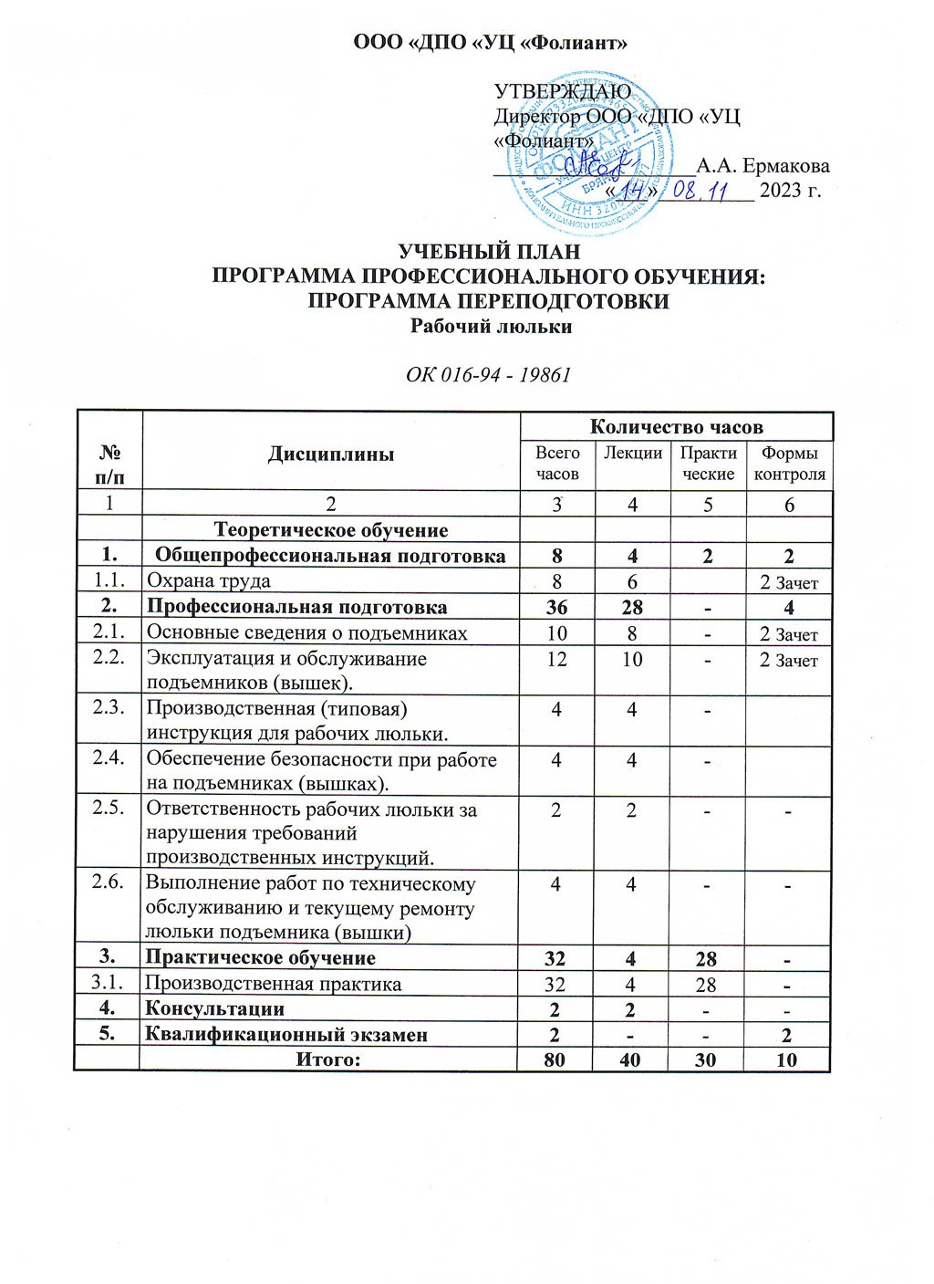 Цель: сформировать у слушателей конкретные профессиональные компетенции, необходимые для обеспечения безопасной работы на подъёмнике (вышке), сформировать готовность к успешной деятельности на рынке труда.