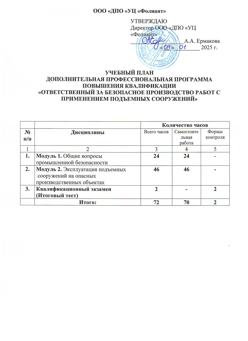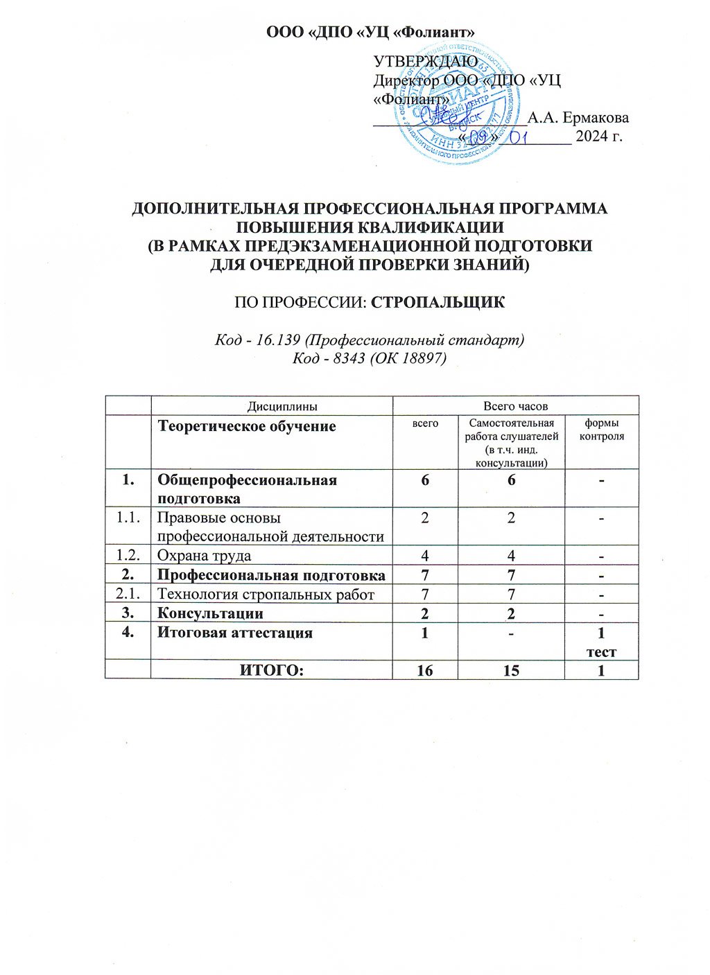 Слушатель, прошедший обучение, и сдавший итоговую аттестацию должен быть готов к профессиональной деятельности в качестве ответственного за безопасное выполнение работ с применением подъемных сооружений» в организациях (на предприятиях) различной отраслевой направленности независимо от их организационно-правовых форм.