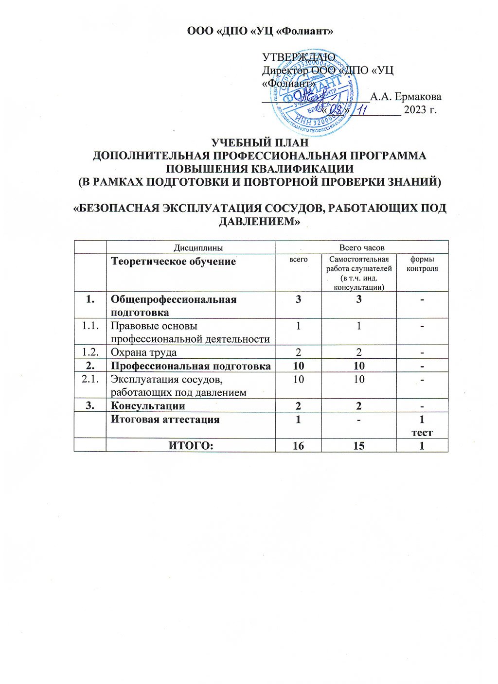 Цель: сформировать у слушателей конкретные профессиональные знания, умения и навыки, необходимые для применения в практической деятельности по обеспечению безопасного функционирования оборудования, работающего под избыточным давлением по профессии «Оператор котельной» 3 квалификационного разряда и сформировать готовность к успешной самостоятельной деятельности на рынке труда, трудоустройству.