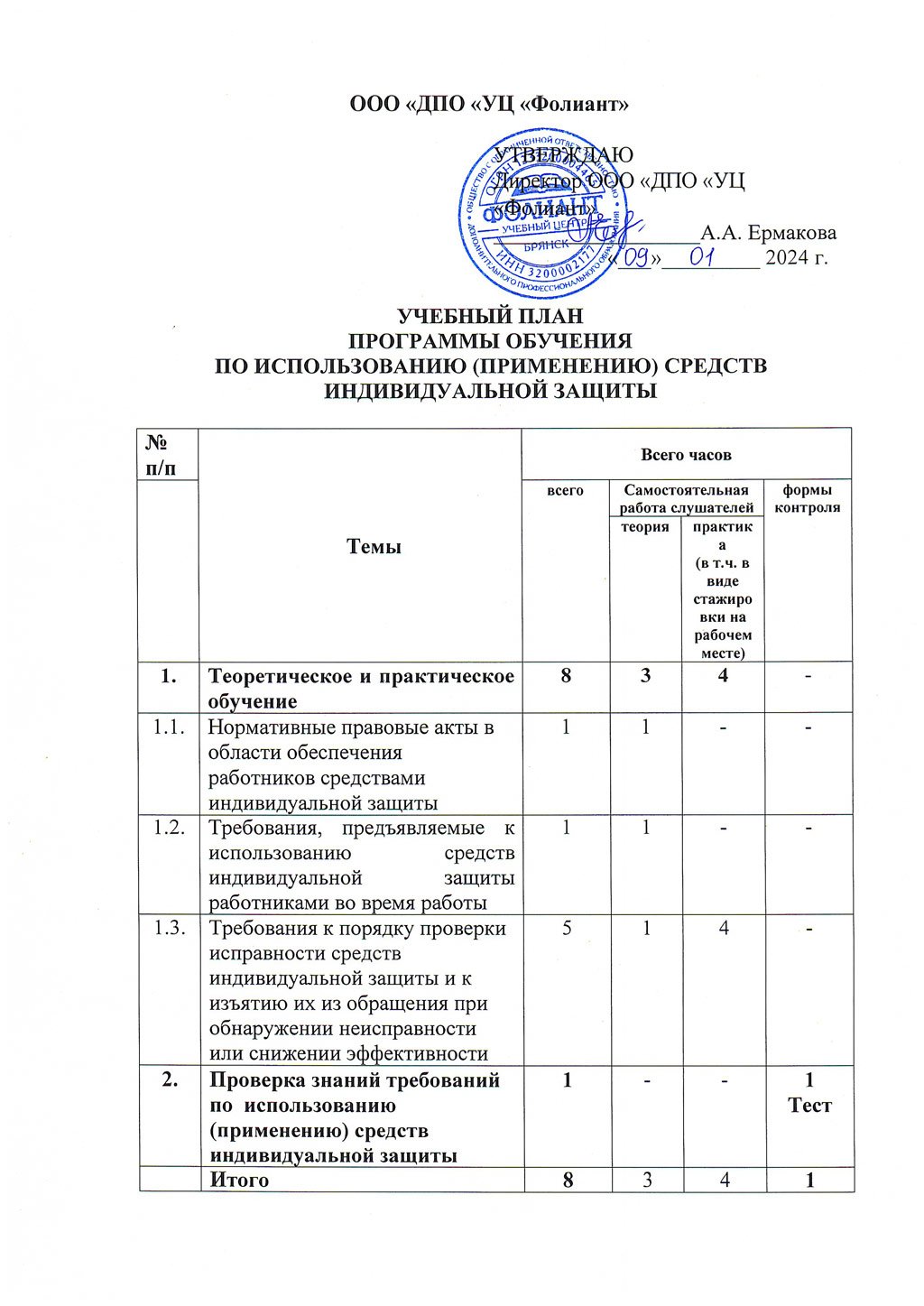 Цель: приобретение слушателями необходимых знаний, умений и навыков, позволяющих использовать (применять) средства индивидуальной защиты работников.