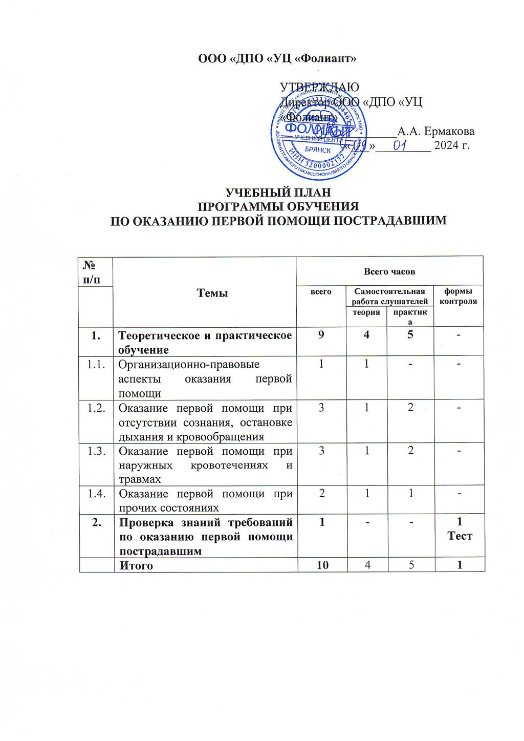 Цель: приобретение слушателями необходимых знаний, умений и навыков, позволяющих оказывать первую помощь до оказания медицинской помощи работникам при несчастных случаях на производстве, травмах, отравлениях и других состояниях, и заболеваниях, угрожающих их жизни и здоровью.