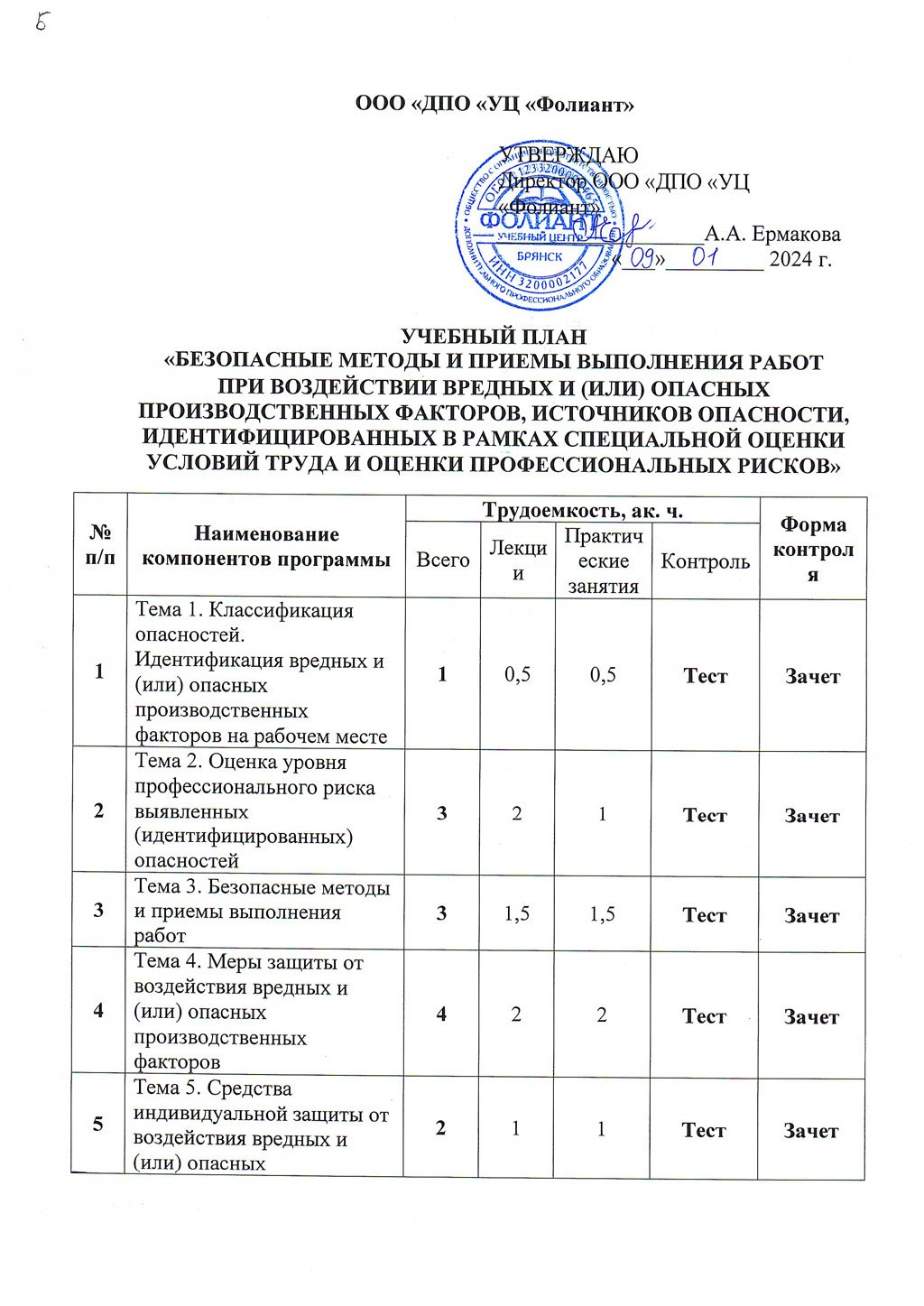 Цель: приобретение обучающимися знаний, необходимых для применения безопасных методов и приемов выполнения работ при воздействии вредных и (или) опасных производственных факторов, источников опасности, идентифицированных в рамках специальной оценки условий труда и оценки профессиональных рисков.
